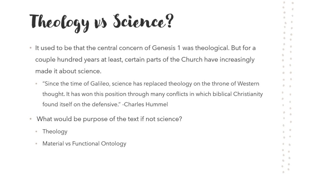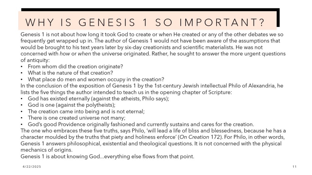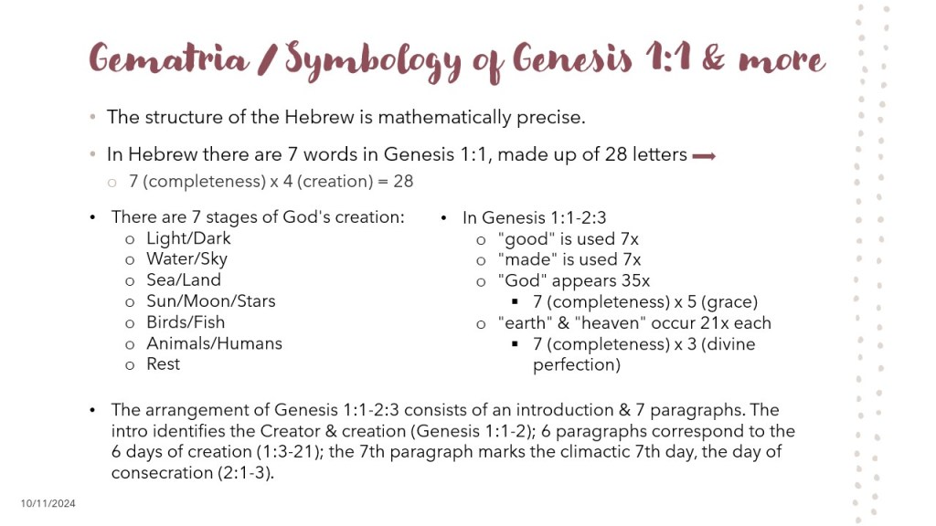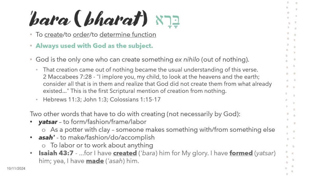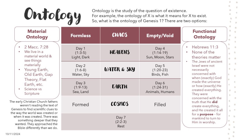 In our Tuesday Bible Study, we are going deep into the book of Genesis with a study called, “Blurry Verses.” We tend to zoom past these verses, because we know them by heart. So, we are slowing way down and focusing in on the details. To see the PowerPoint slides from this series, you can find the images below (click to enlarge).
